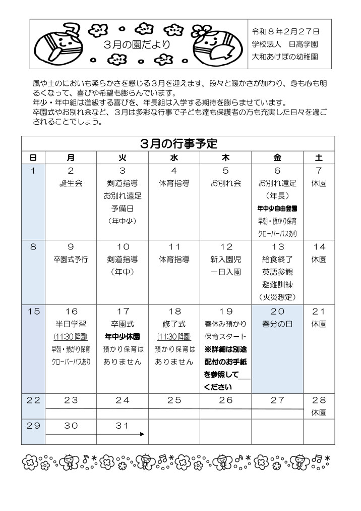 3学期の園庭開放の日時をご案内致しますので、ぜひ遊びにいらしてください。