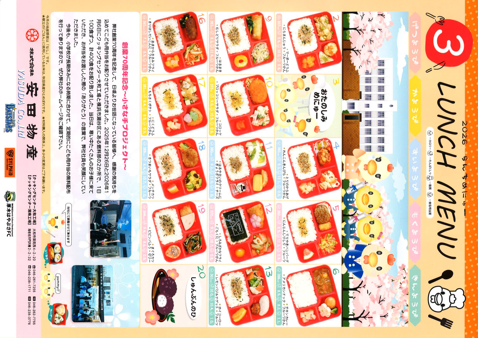 大和あけぼの幼稚園では、幼児の発育を助長する栄養と健康の両面を考え、栄養士の献立指導による完全給食制を実施しています。 衛生面にも細心の注意を払い、子どもたちが楽しく食事をできるよう工夫しています。 アレルギー食対応もしています。