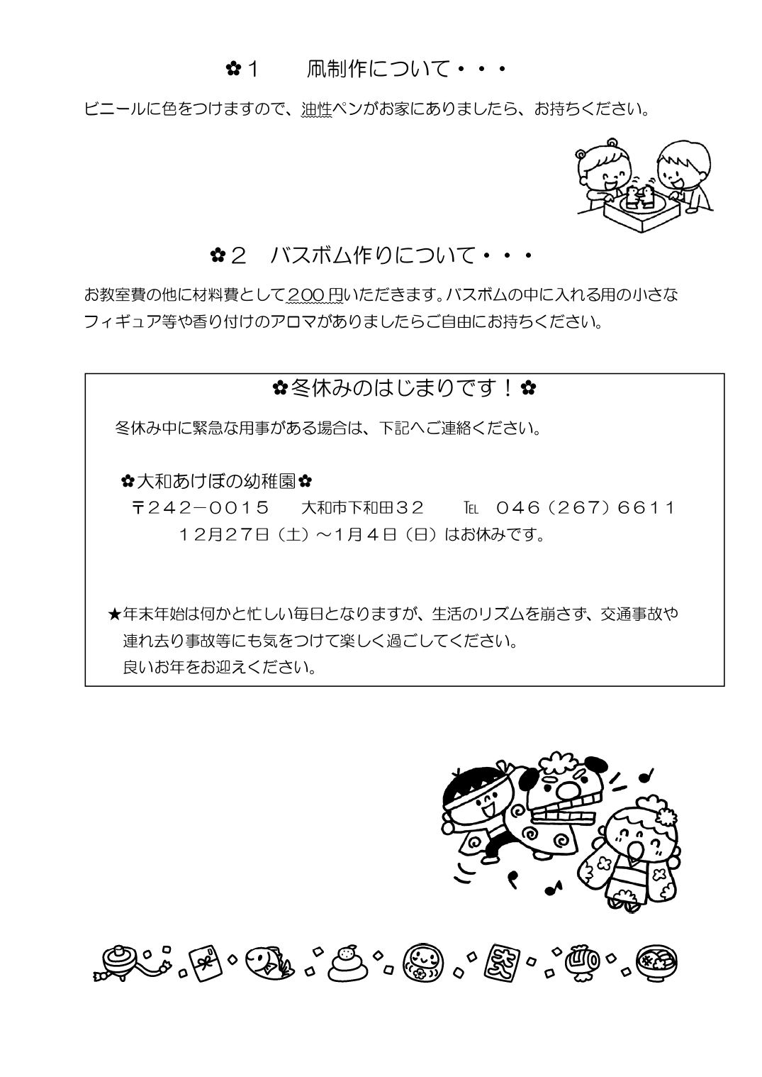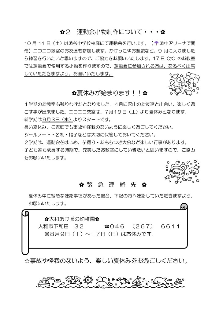 当日欠席される場合は、9時~9時15分の間にご連絡ください。