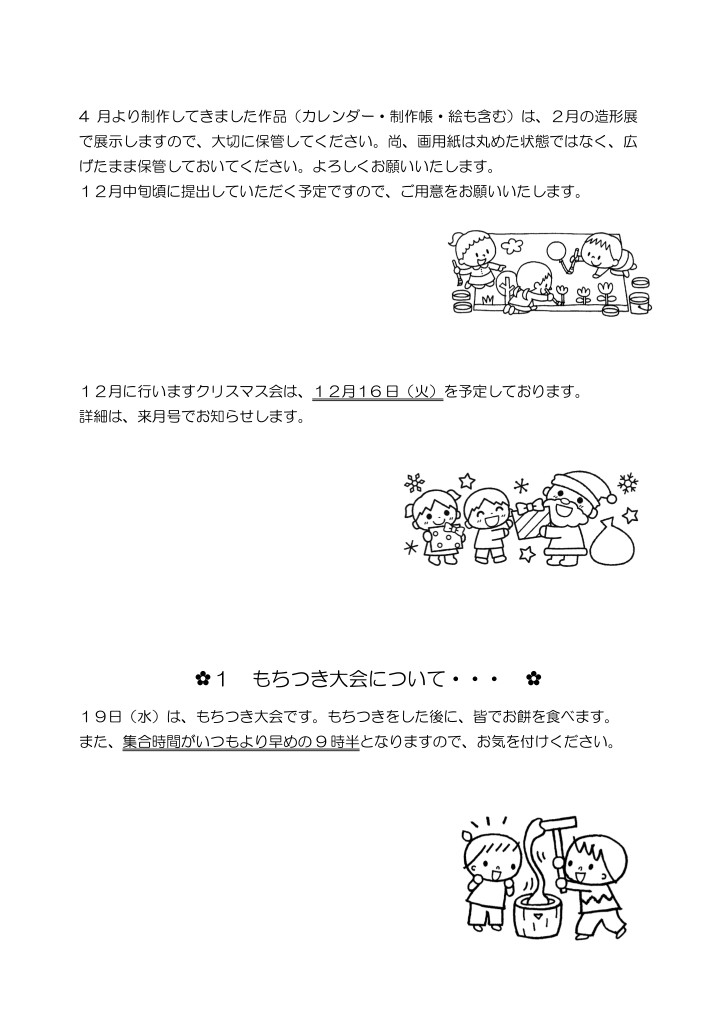 体育・英語・言語・絵画作成他、幼稚園生活に準ずる活動。