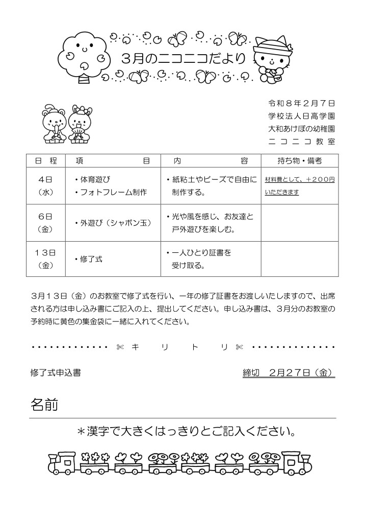 大和あけぼの幼稚園 ニコニコ教室