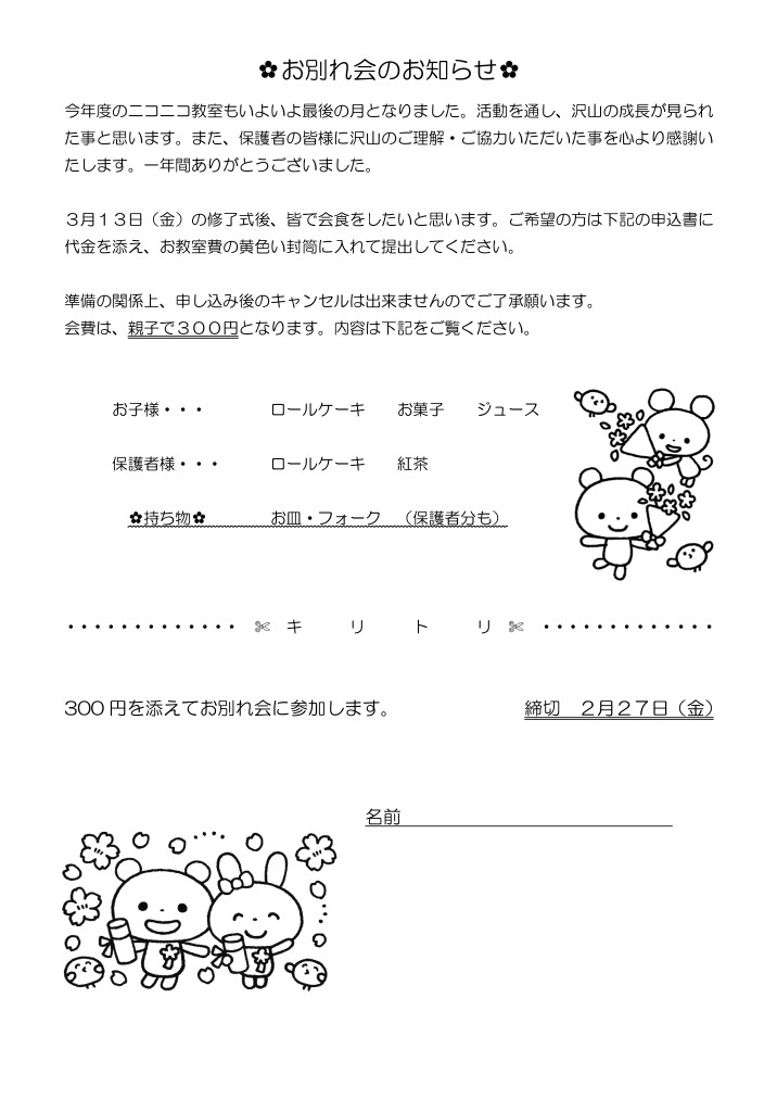 ニコニコ教室無料体験のお知らせ